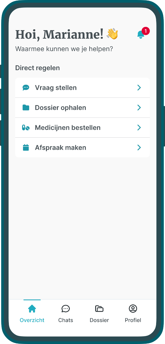 Ook kunt u herhaalmedicatie aanvragen of een medische vraag aan ons stellen.